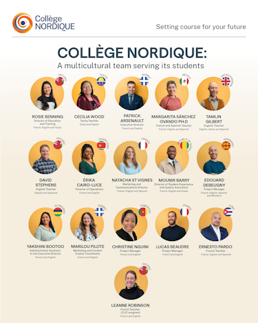 Passionate and specialists in their fields, our teaching staff are responsible for developing high-quality, tailor-made training programs adapted to the Northern context. Thanks to their creativity in learning activities, they stimulate curiosity and foster the development of our student community.