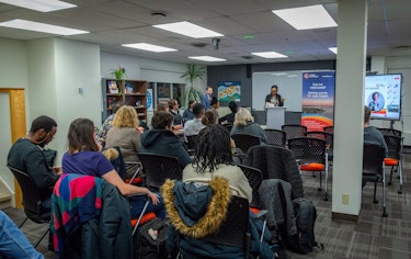 Lors de sa présentation dans la salle Fort Smith au 3e étagè, Mounir Barry, directeur de l'expérience étudiante et de l'assurance qualité, a partagé les statistiques d'inscription, en mettant un accent particulier sur les cours de langues. Bien que ces derniers aient enregistré une légère baisse par rapport à l'année précédente, cette diminution s’explique principalement par les feux de forêt et l’évacuation qui en a découlé. Cependant, il a soulevé que l'année 2023-2024 reste la deuxième meilleure année en termes de nombres d'inscription.