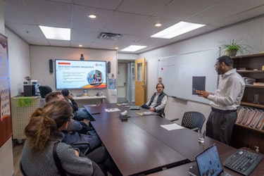 Natacha St Vignes, directrice marketing et communications et installée dans la salle Inuvik au 2e étage, a souligné le travail accompli pour renouveler les supports de communication imprimés et numériques, intégrant le nouveau design et le slogan du Collège Nordique. Cette initiative marque la dernière phase de la refonte globale de l’image de marque de l’établissement. Elle a également mis l’accent sur le partage de statistiques clés du nouveau site Web, tout en parlant du développement des contenus pour le blogue et les réseaux sociaux qui figuraient parmi les priorités de l’année.
